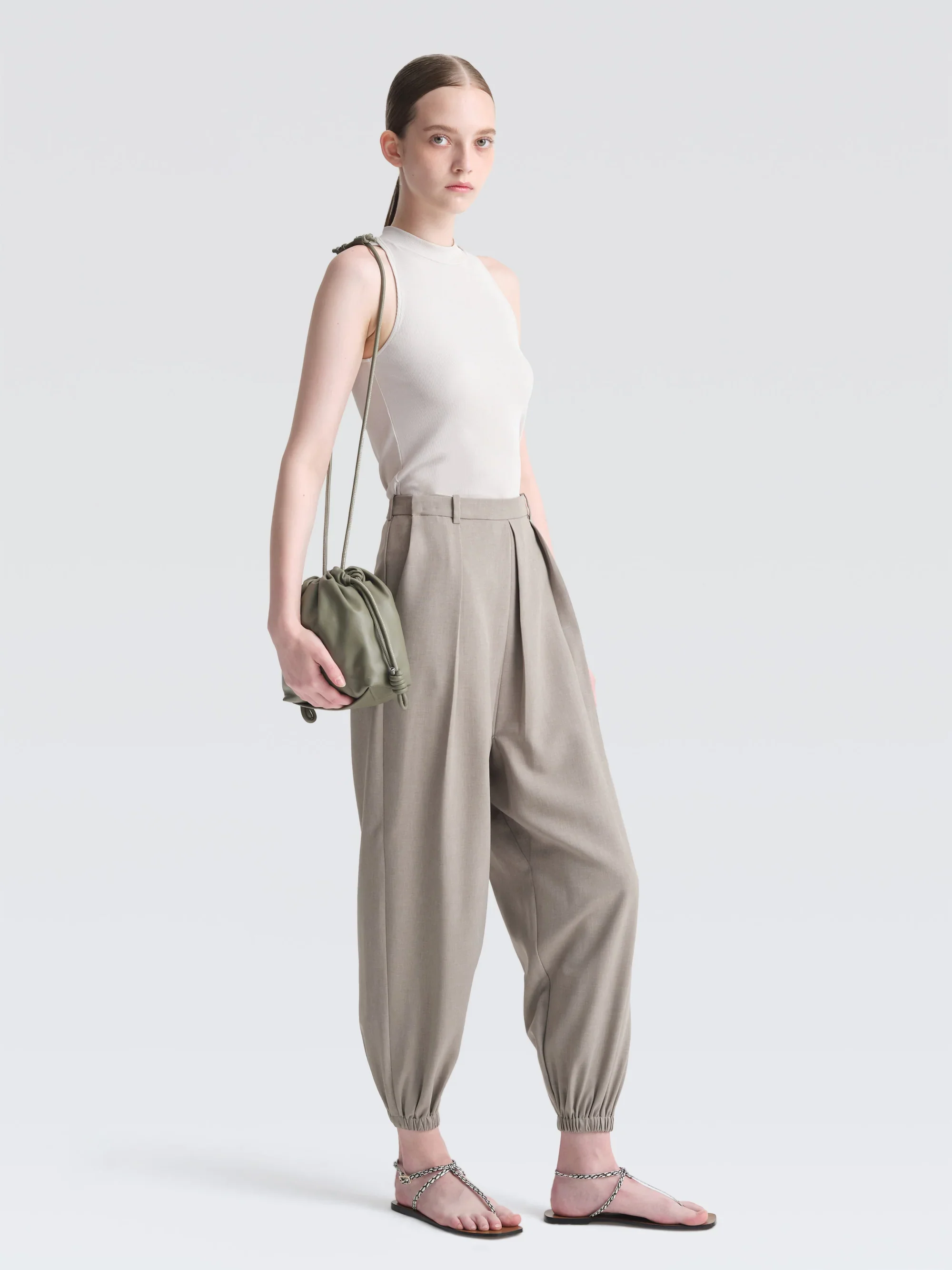 The new shoulder POUF bag will accommodate all your daily essentials with ease. Crafted in butter-soft Nappa, it cinches close using drawstring pulls finished in coiled knots, and secures with a discreet magnetic closure. Maintaining the versatility of the original mini POUF, this iteration is designed with a pulley inspired handle that allows it to be customised arry it over the shoulder, as a crossbody or by hand.